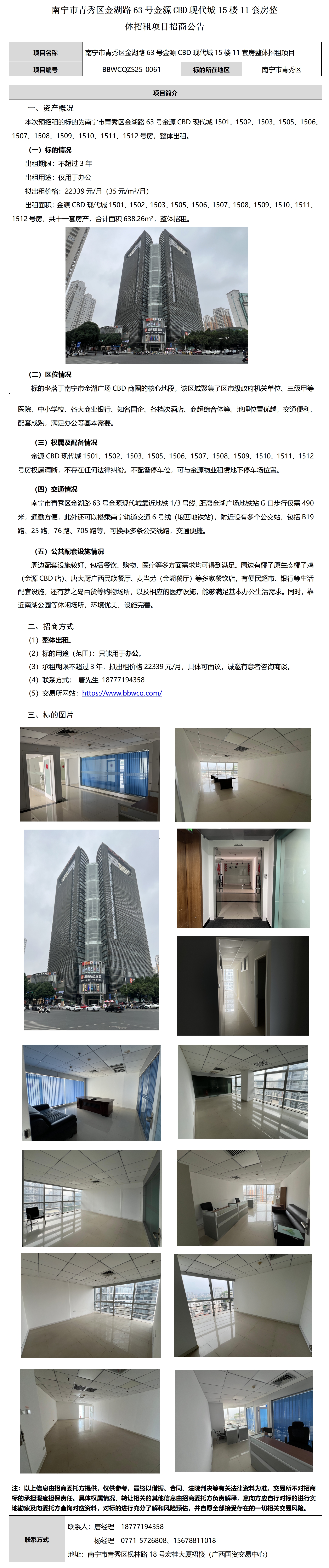 南宁市青秀区金湖路63号金源CBD现代城15楼11套房整体招租项目